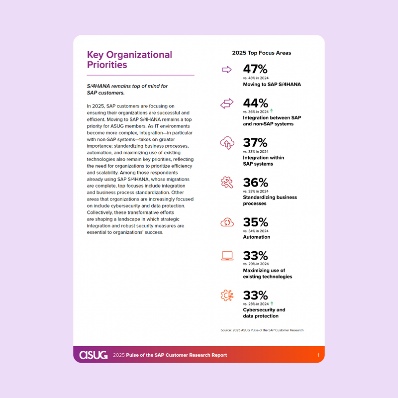 Gain insights into S/4HANA adoption, digital transformation, and top challenges impacting SAP customers. Explore the insights in the ASUG Pulse of the SAP Customer Research report.