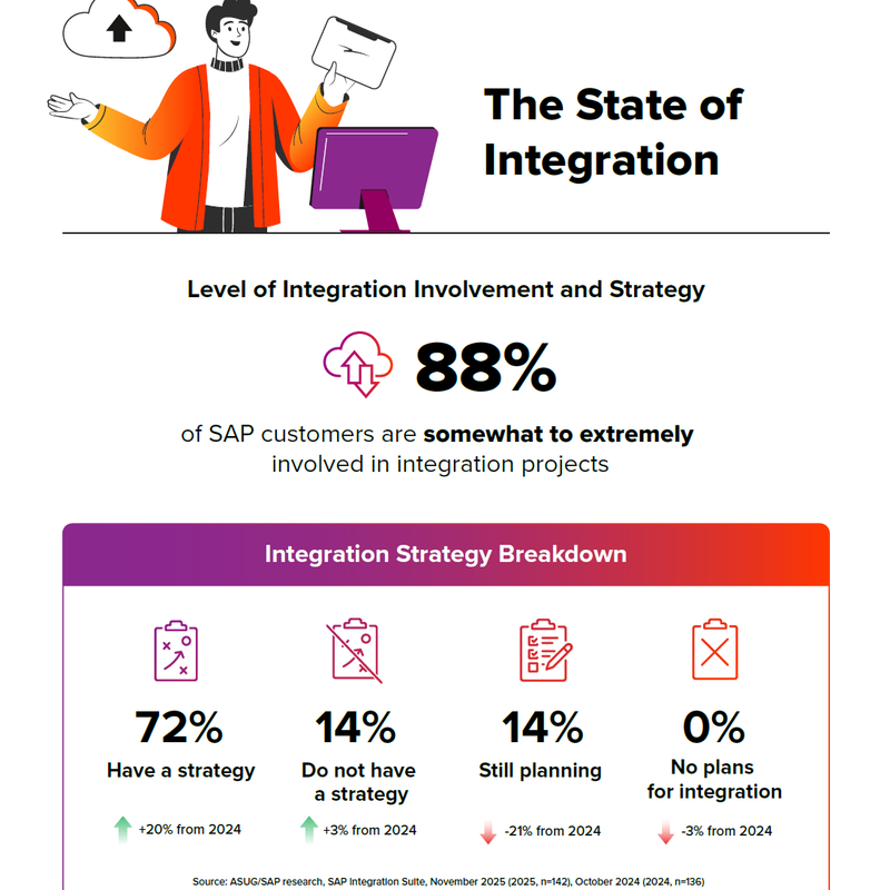 Integration remains central to SAP transformation, but organizations are becoming more deliberate in how they approach it. New research shows 88% of SAP customers are actively involved in integration projects, with a growing number adopting formal strategies to guide execution.