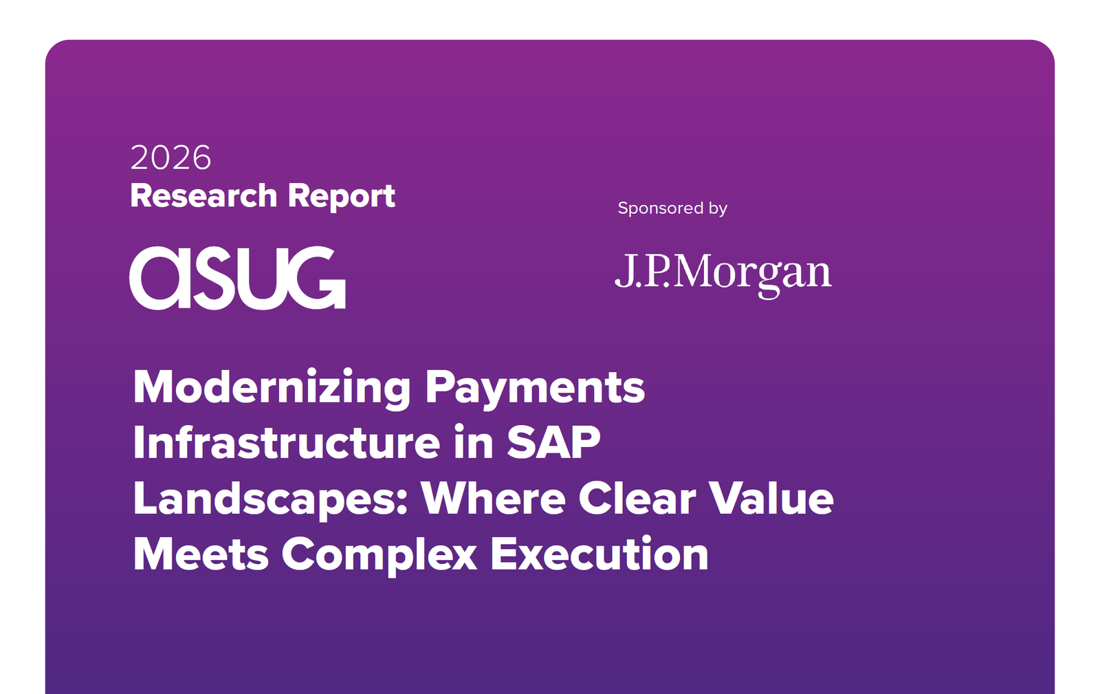 A recent survey conducted by ASUG in collaboration with J.P. Morgan, captures insights from 107 ASUG Members directly involved in treasury and payments operations to understand how organizations approach finance modernization. The findings point to clear momentum. Most organizations report some level of automation in place and see clear value in embedding financial services directly into SAP workflows. At the same time, progress remains uneven. Manual processes, bank integration complexity, skills gaps, and security concerns all constrain how deeply automation can be applied. These insights highlight a central challenge facing enterprises today: while the value of modern payments infrastructure is well understood, determining how to modernize effectively remains complex.