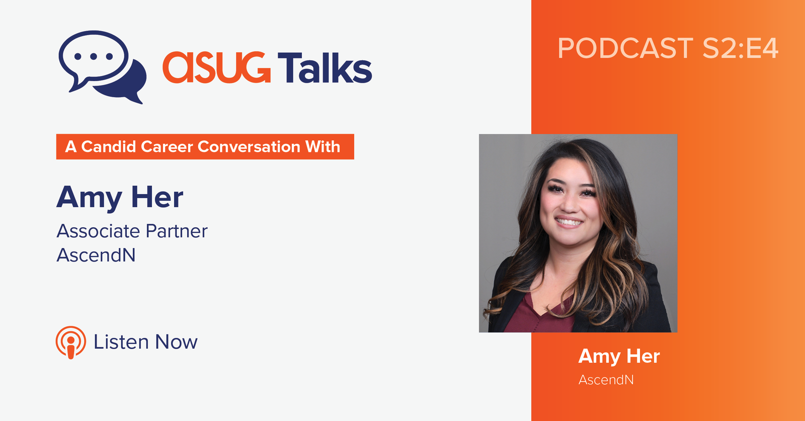In this fourth episode of ASUG Talks: Candid Career Conversations, season 2, we talk with Amy Her, Associate Partner with AscendN.