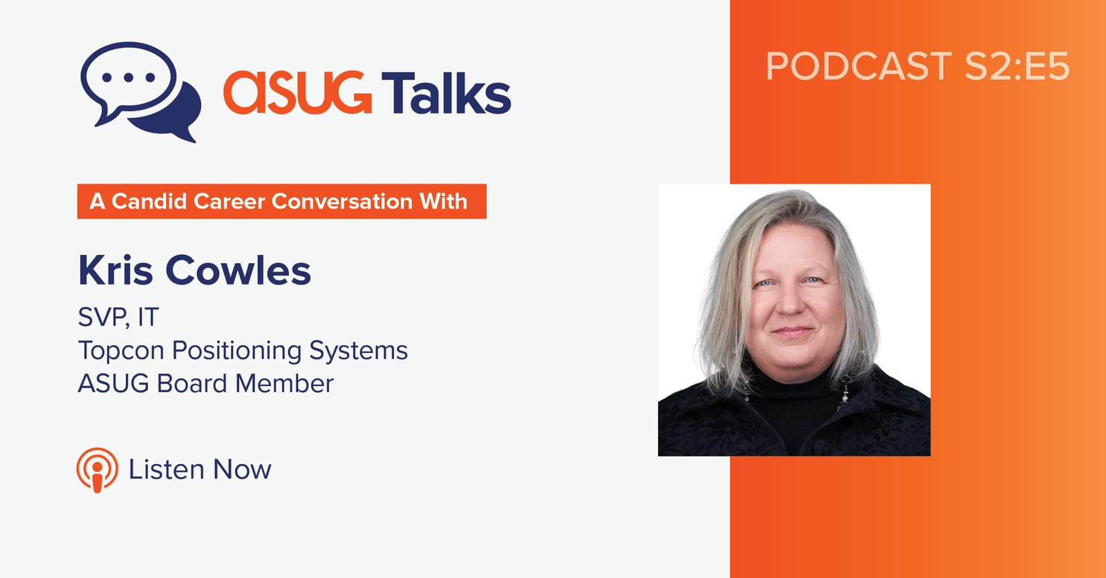 In this fifth episode of ASUG Talks: Candid Career Conversations, season 2, we talk with Kris Cowles, senior vice president of IT at Topcon Positioning Systems and a member of the ASUG Board of Directors.