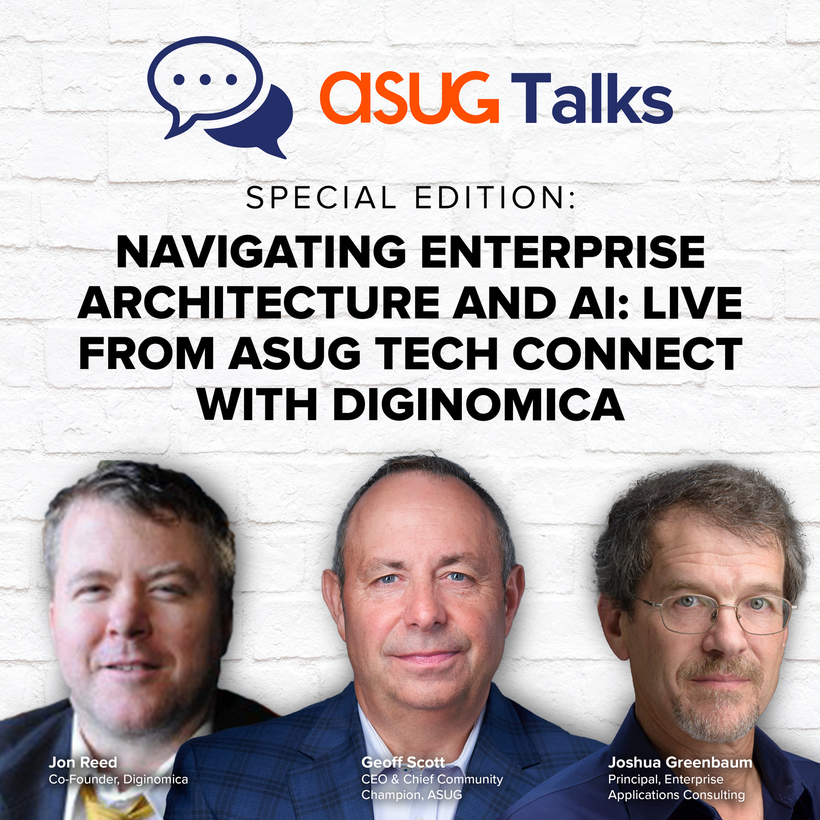 ASUG partnered with Diginomica for a special episode of ASUG Talks. Recorded at ASUG Tech Connect, Jon Reed, Co-Founder at Diginomica, hosted a conversation with Geoff Scott, CEO & Chief Community Champion at ASUG, and Joshua Greenbaum, Principal at Enterprise Applications Consulting.