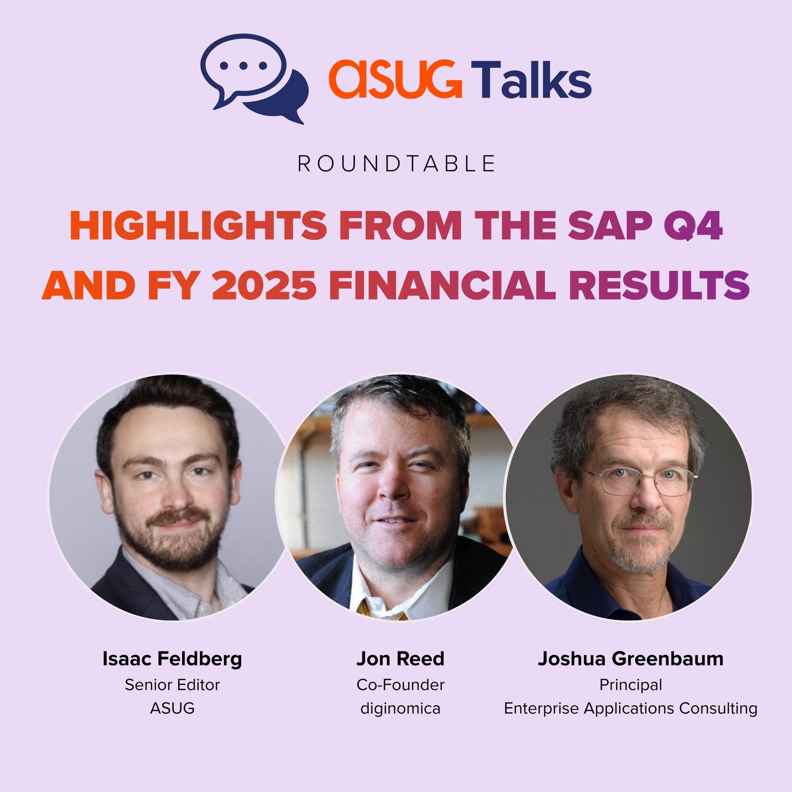 SAP announced its Q4 and full year 2025 financial results last week. Analysts Joshua Greenbaum and Jon Reed, along with ASUG Senior Editor Isaac Feldberg join ASUG Talk to discuss their key takeaways and highlights from the financial results call.