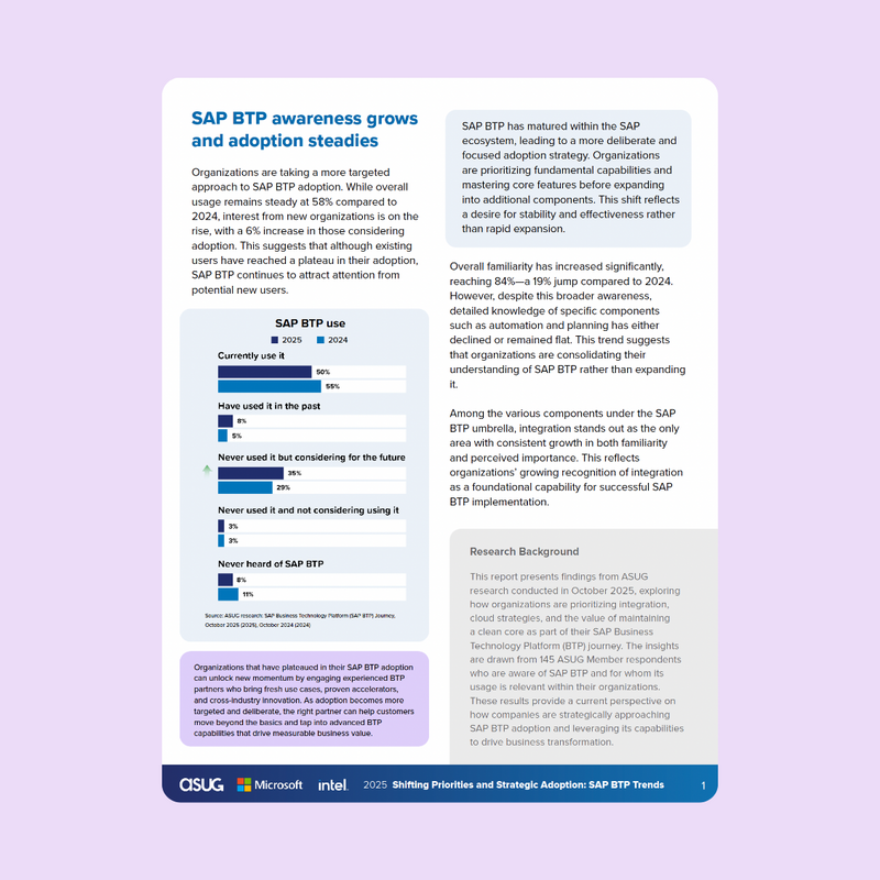 Download the infographic to understand how SAP customers are sharpening their SAP BTP focus and where strategic investments are taking shape for the year ahead.