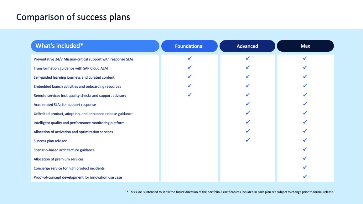 There are already resources available that can mimic the upcoming service plans. For example, SAP customers can experience the Advanced success plan with these services: