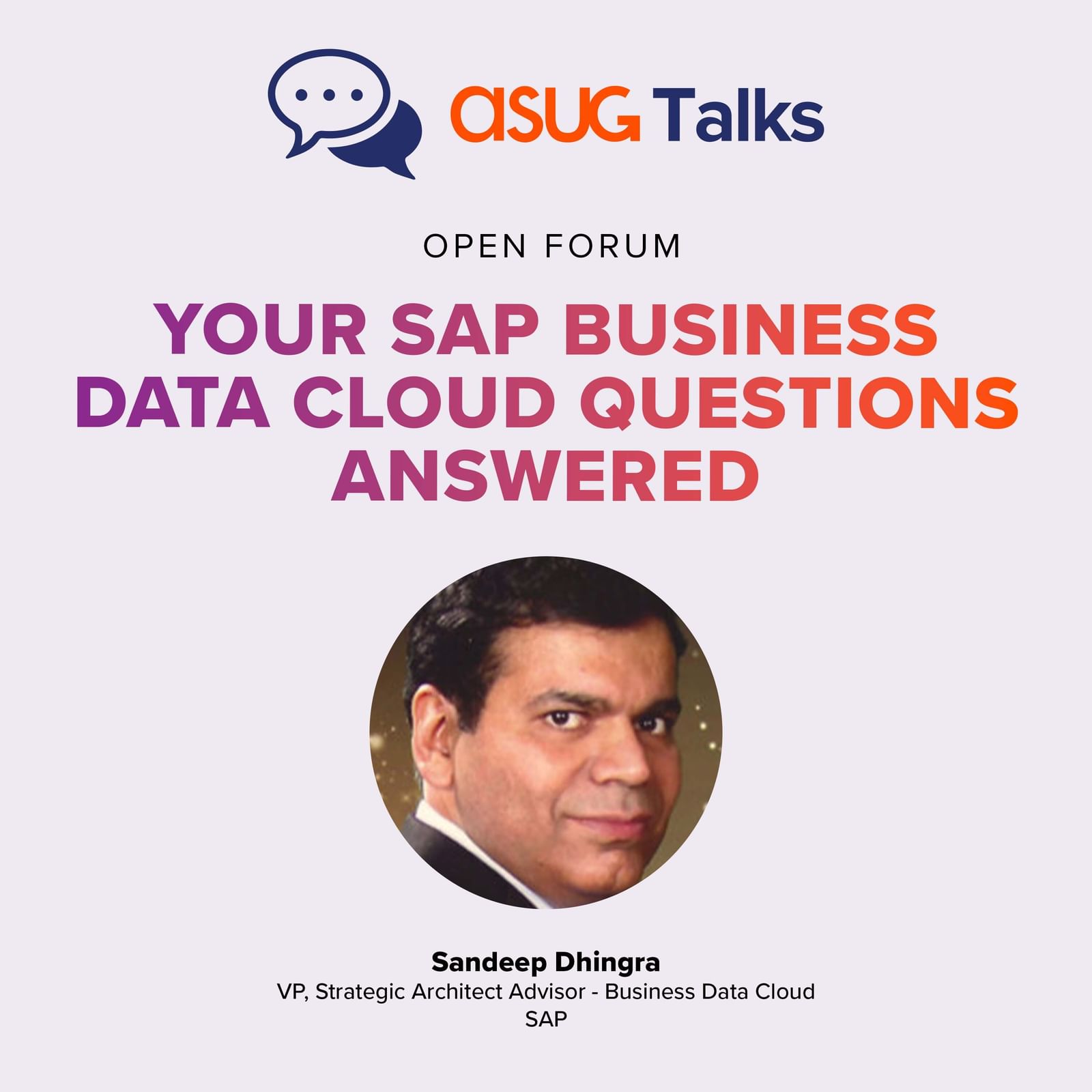 This week on ASUG Talks, I am joined by Sandeep Dhingra, VP & Strategic Architect Advisor of SAP BDC. He addresses the event's unanswered questions about BDC, and how it can help customers prepare their IT landscapes for AI.